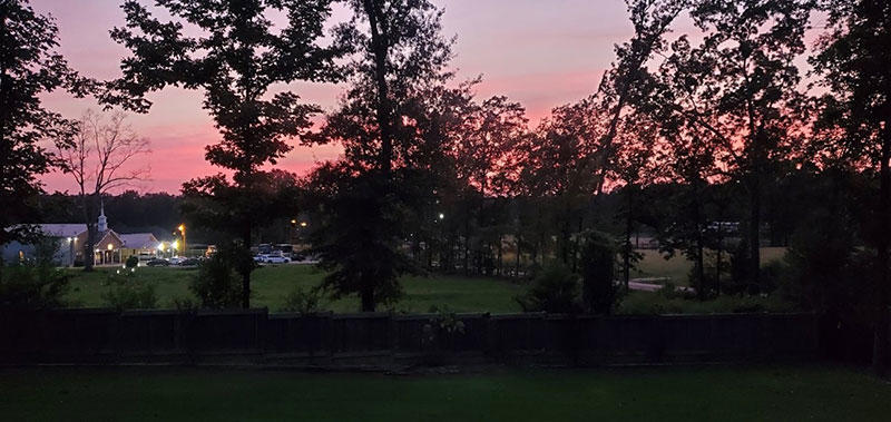 写真4:ミシシッピーにある自宅から。隣には教会と農場があり、道路を車で走るときには飛び出してくる野生の鹿に注意が必要。